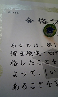 合格者には、バッジと認定書が届くという噂?を聞いていたのに、